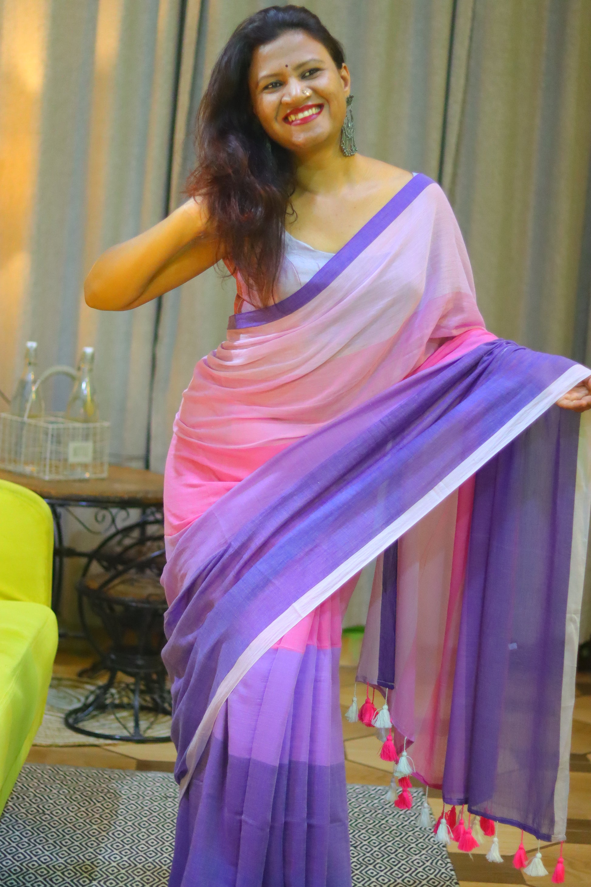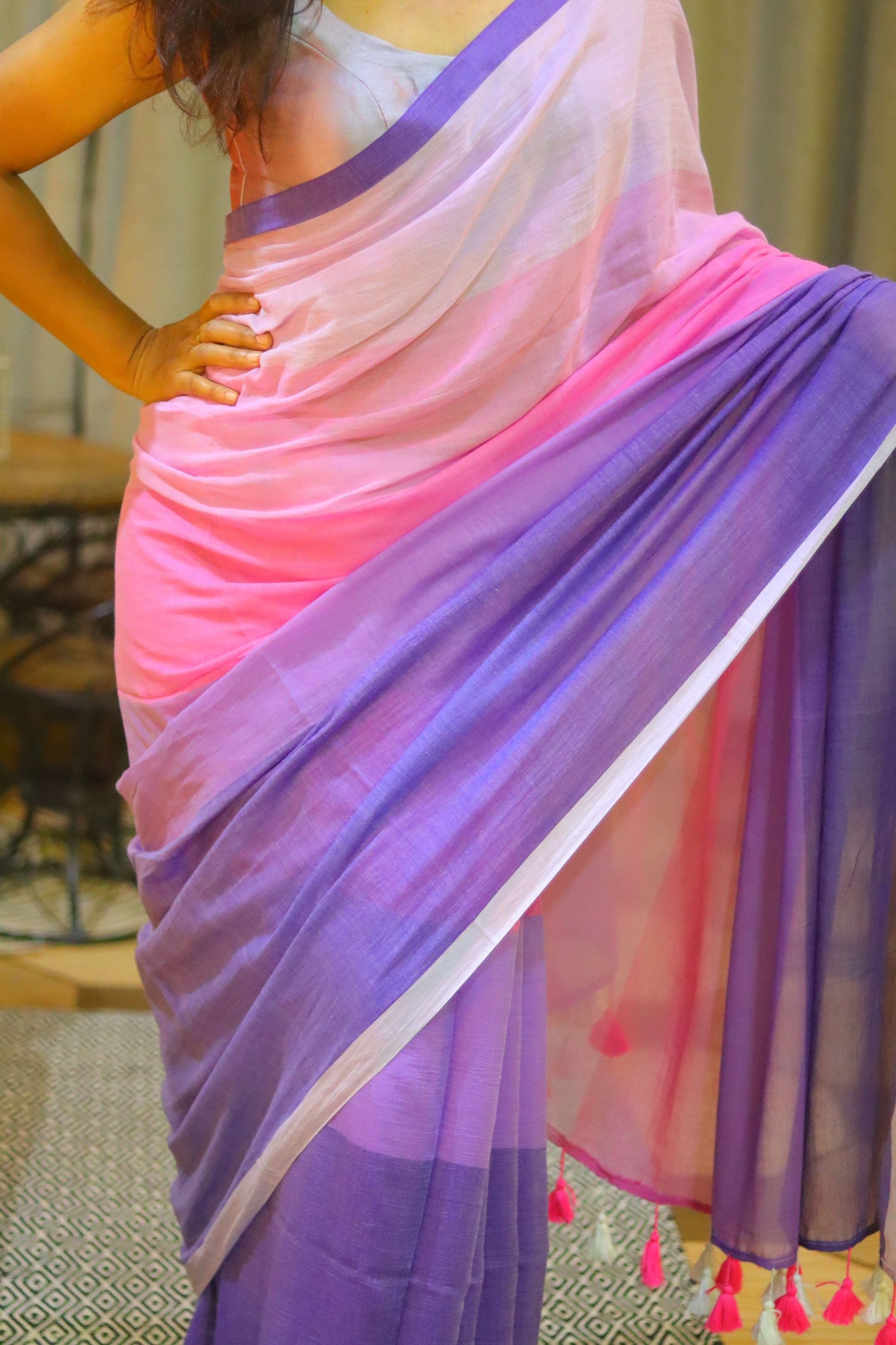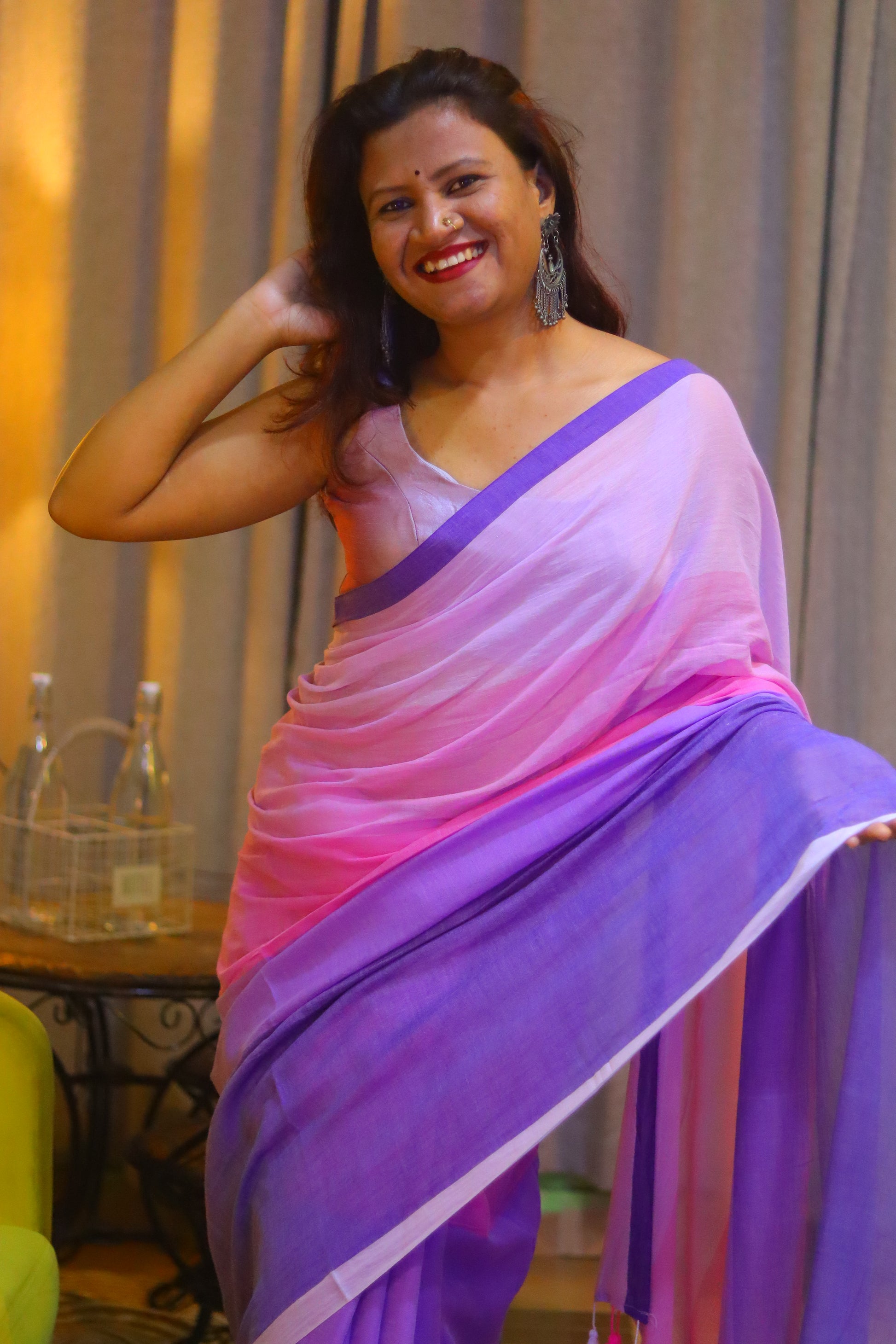 "Mahi" - a vibrant and playful mul cotton saree that embodies the beauty of a rainbow. This stunning piece features a mesmerizing multi-colored palette, carefully woven to create a gradual ombre effect. The soft, lustrous mul cotton fabric drapes elegantly, while the rainbow hues evoke a sense of joy and celebration. Perfect for making a statement at festivals, parties, or special occasions.