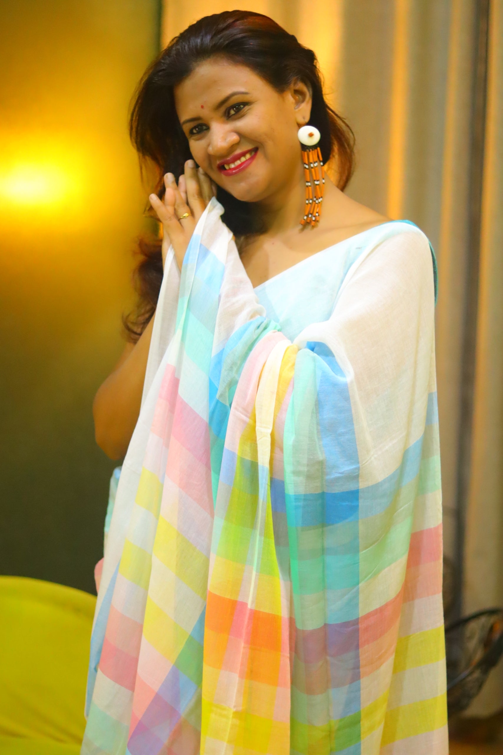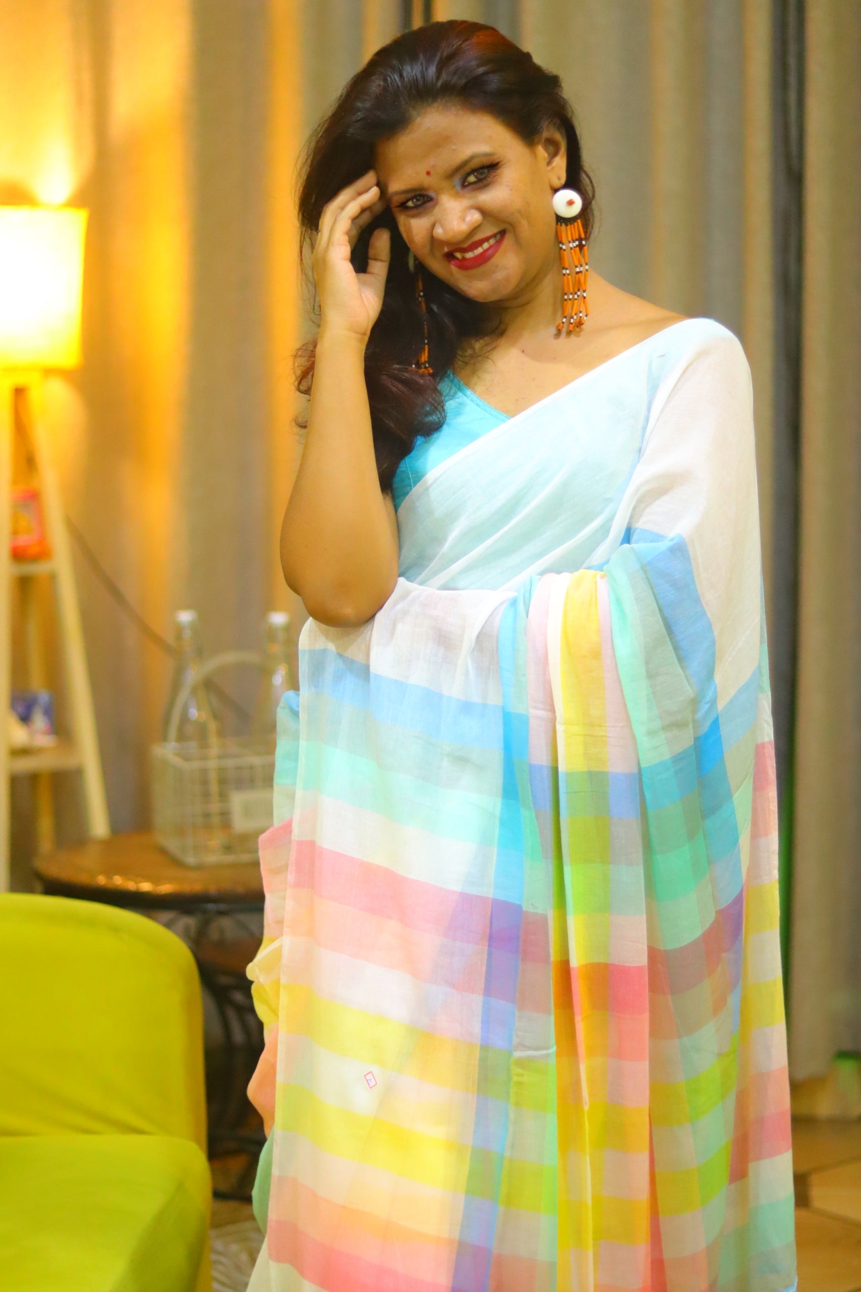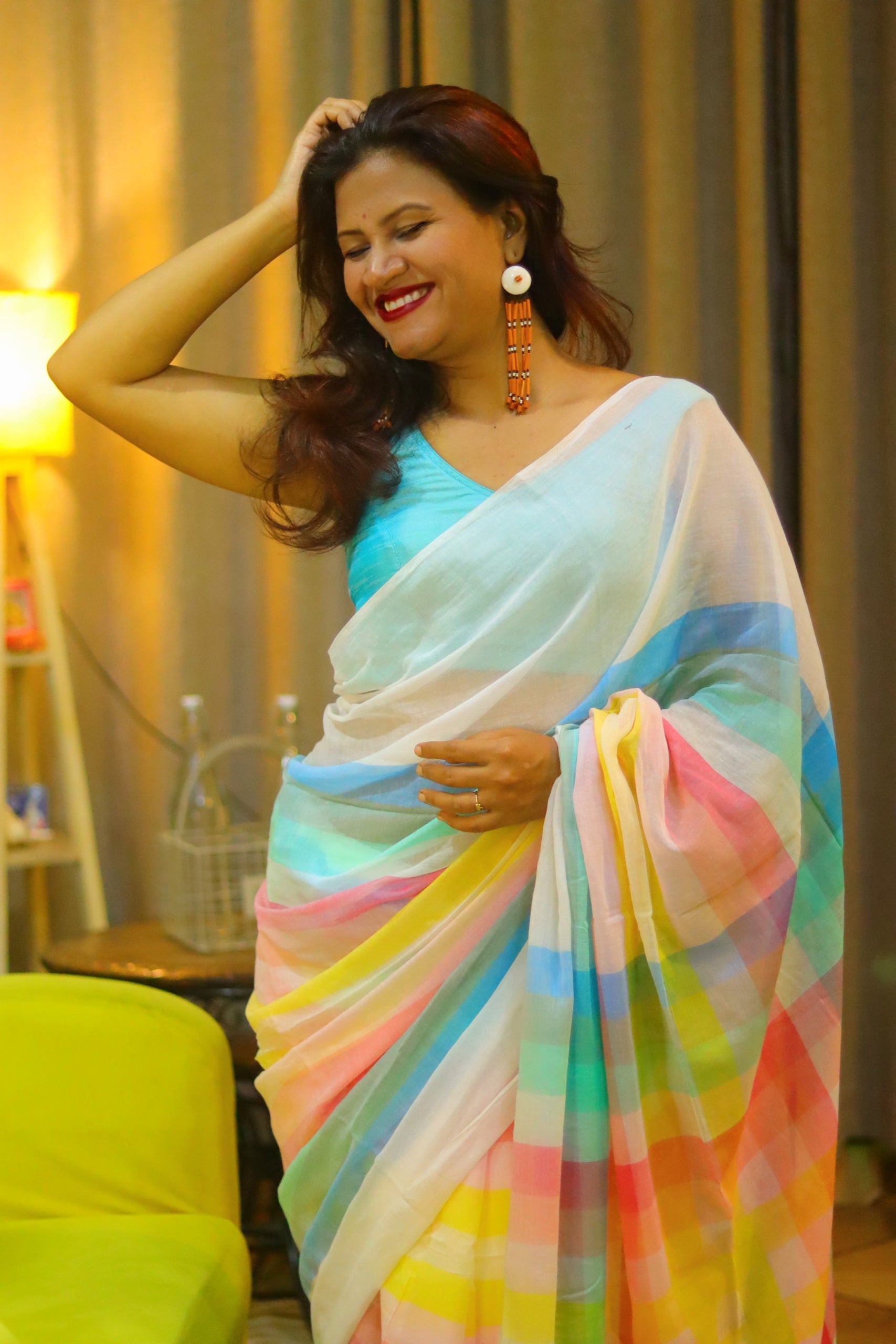 Experience the kaleidoscope of colors with "Prismatic", a mesmerizing saree that is versatile and captivating like a rainbow. This stunning six-yard wonder is woven with intricate threads of vibrant hues, carefully crafted to create a prismatic effect that changes with every movement.